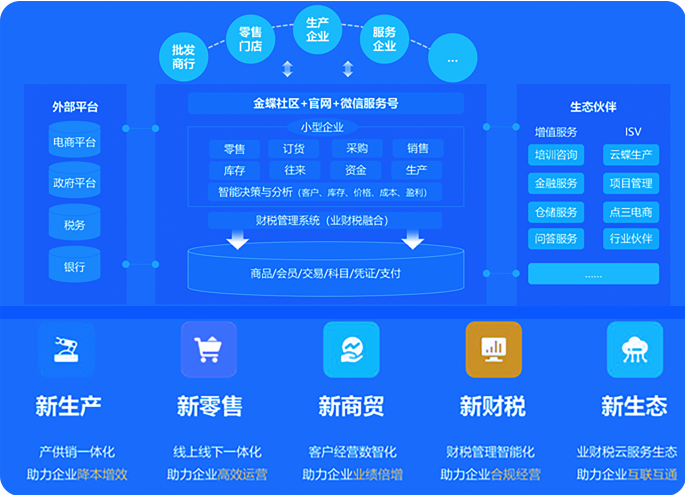 金蝶云·星辰基于金蝶云·蒼穹云原生PaaS平臺構建,聚焦小型企業在線經營和數字化管理,提供財務云、稅務云、進銷存云、零售云、訂貨商城等SaaS服務,支持企業拓客開源、智能管理、實時決策; 金蝶云·星辰還提供輕量級PaaS平臺和全面的API接口,廣泛連接生態(tài)伙伴,為小微企業提供一站式服務,助力企業快速成長